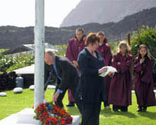 Remembrance Day Service 2006 Photographs from Dr Joerg Jaschinski of the congregation at the Remembrance Day Service held at St Mary 's Church on Sunday 12 November. Collections at both St Mary's and St Joseph's services on that day are being sent to Rev Don Wittich in Cape Town in aid of the Earl Haig Fund (Scotland). Poppies worn by members of the congregations were made by disabled Scottish ex-servicemen at Lady Haig's Poppy Factory in Edinburgh, Scotland. Tristan da Cunha experienced its most isolated phase during the 1914-18 war, with no incoming mail for 10 years, but no resident islanders involved in hostilities. The 1939-45 war saw a top secret British Naval Station, code named Job 9 or HMS Atlantic Isle, monitoring German South Atlantic U Boat movements by radar. The island saw no hostilities but now joins the world community in remembrance for those who gave their lives in conflict world-wide. |