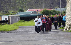 Roman Catholic Priest arrives from Falklands for a welcome visit Tristan's Roman Catholic congregation welcomed Monsignor Michael McPartland, Prefect Apostolic of the South Atlantic on Monday 19th March 2007. He joined the cruise ship National Geographic Endeavour during her call at the Falklands in order to visit the community on Tristan where he is now staying until the end of April. We expect to publish more news and photographs of his visit soon. |