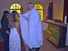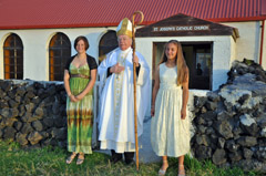 The Old Testament lesson was read with clarity and confidence by six year old Rhyanna Swain and the New Testament lesson by Lay Minister Lars Repetto who also led the prayers. The sermon was preached by Fr. Christopher Brown who was appointed rector of St Mary's Parish in May this year. Servers were Dean Repetto and Julian Repetto, both of whom are members of this year's Confirmation group.The Bishop and Fr. Christopher Brown then visited the homes of the children where the families were celebrating this happy day. Particular thanks is extended to Kirsty Green who selected and played the music for the service and to Bishop Christopher who wrote the poem entitled 'First Communion' to honour the occasion. Edited report from Fr Christopher Brown 27th September 2007 |