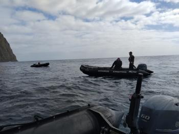 | The Hondius at Nightingale Island and zodiacs waiting to pick up passengers. Photos: Wayne Swain | |