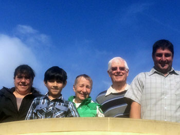 Sunday 18th OctoberThe family are shown with their hosts on Box Hill in Surrey: Earlier the group attended a local Church service and later John returned the family to their London hotel by train ready for their final few days in the capital. It is the first time the Swain family have been to the UK, or been on a plane. |