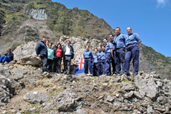 Commemorating the 50th Anniversary of the volcanic eruption and evacuation Photos show the plaque which was unveiled on this day and the party of crew members, Islanders and Expatriates present. Peter was a founder member of the Tristan da Cunha Association I send my warmest greetings to you all. May I share with you, for a moment or two, that extraordinary chain of events which unfolded for us all 50 years ago. Think back (if you were old enough then) to early October 1961 when the weather and the sea were both bad. We hadn't seen a ship for weeks until, a few days earlier, the two fishing ships had arrived at the start of their fishing season. Meanwhile back on land things had not been easy for some time with earth tremors, bumps and rock falls, in and around the village, increasing in number and intensity day by day. Nobody knew for certain what was happening deep down beneath us. Even the experts from England and South Africa could only guess - wrongly as it turned out! There wasn't much we could do ourselves except cross our fingers and hope for the best! We did however manage to establish that whatever was going on was happening right underneath us! This was not only extremely unlucky, but also extremely lucky as well - bad luck because we might have had to get out of the way very quickly indeed if things going on below ever came to the surface, and good luck because there were probably places we could escape to if necessary. As it was, we just had to wait and see; but not for long, for on October 9th a spot on the grassy slope near the houses split, with one half rising some 10 feet above the other. What was it - the beginnings of a volcanic eruption or what? It wasn't at all clear! Common sense dictated that we should get out of the way and that night we slept, as best we could, at the Patches. Meanwhile, out at sea the two fishing vessels rode at anchor opposite to us and in the middle of the night, Scottie seeing the start of an eruption, sent up flares to warn us. Mercifully, we slept on and were not tempted to try to evacuate to the ships in the dark. Mercifully too, when daylight arrived, the sea was calm and with the new volcano growing quietly we were able to leave from Little Beach without anyone so much as spraining an ankle. Up to this point our biggest lucky break was that the new eruption grew slowly and didn't explode hurling rocks high into the sky. If it had exploded I am sure that none of us would be around today! Being blessed with good fortune during the evacuation itself right up to the eventual return to the Island, good luck stayed on, as one after another the jigsaw pieces fell into place during the days and months that followed. The sea was calm, the volcano didn't explode, an empty liner was crossing the Atlantic, another liner on its way to Southampton was waiting in Cape Town, the Army lent us some barracks and the RAF gave up no less than sixty four of their houses in Calshot and then, most important of all, in Cape Town and in England we were surrounded by kindness and real sympathy with people falling over backwards to be helpful. And then finally the best bit by far. All those hundreds of miles away on Tristan the eruption stopped and it was safe to return. Martha Rogers summed it all up beautifully when she said:- "We was meant to leave and now we is meant to go home" God be with you and the Island too. Peter Wheeler October 2011 |