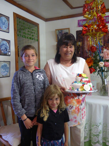 | Tordy with her cake | Tordy with her young relatives Amber Repetto and Ella Repetto |