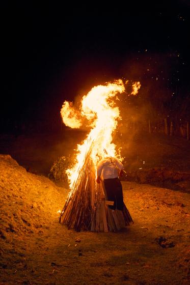 As darkness settled, one by one, little flickers of orange began to appear across the island. Fires came to life near fences, gardens, and open spaces, their flames dancing and crackling in the cold air. The scent of wood smoke carried on the wind, mingling with the distant sound of laughter and chatter. From afar, you could see the volcano silhouetted against the night ,tiny pinpoints of fire glowing like scattered stars across its slopes.