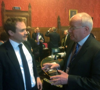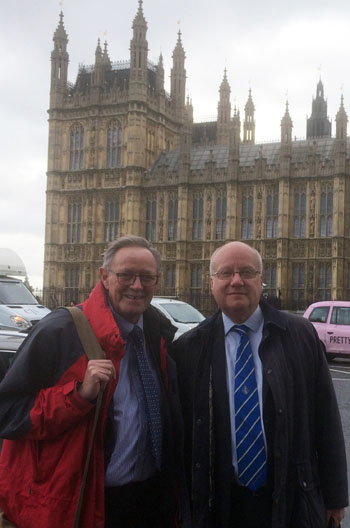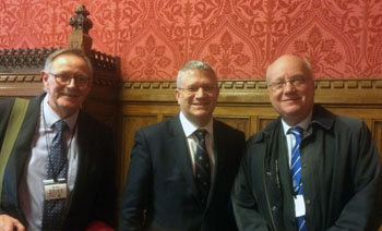 | Photos taken on 27th November show - Left: Chris Carnegy with Foreign Affairs Committee Chairman Tugendhat MP Above: Andrew Rosindell MP flanked by Jim and Chris |