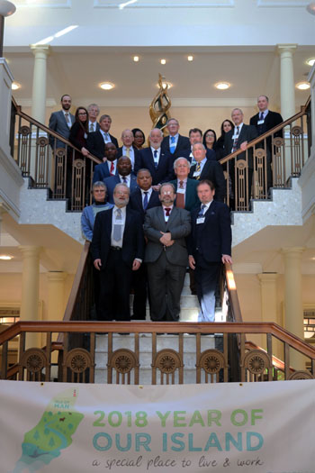 'The meeting was an excellent opportunity to share good practice and discuss common concerns and we learned a lot from meeting that we can put into effect in our islands. 'It was especially useful to discuss with the UK's Environment Minister, Dr Thérèse Coffey, how our jurisdictions can work together, and more closely with the UK, to ensure a coherent approach on matters such a plastic waste, ocean acidification and warming. Minister Coffey invited the group to join the UK's discussions on these matters.' Professor Cortes said: 'The way our diverse territories work together in mutual support and for the protection and improvement of the environment and quality of life is our main strength and an example to others. 'We are looking at a sustainable future within our territories but have also recognised our responsibility beyond our shores. Most of us are islands and so we are also championing the future of our oceans by joining the stand against plastic pollution and working towards improvement of the biological status of the many kilometres of sea that are the responsibility of the United Kingdom.' Hon. David Osborne, Montserrat's Minister for Agriculture, Trade, Lands, Housing and Environment, said: 'By working as a group, we are much stronger in being able to achieve certain goals. Many of us are facing similar problems and, because of Brexit, much uncertainty remains. However, if we come together we can put forward ideas for ways to overcome these challenges, much can be achieved.' Dr Mike Pienkowski, Chairman of UKOTCF, commented 'We have for over 30 years brought together groups of practitioners, decision makers and civil society across the Overseas Territories and Crown Dependencies to share experiences and encouraged collective endeavour. This is now more relevant than ever, given the unique set of challenges faced by them especially in the face of climate change and some of the consequences of the UK's departure from the European Union. The meeting heard about the work of the Department of Environment, Food and Agriculture to meet its international commitments and to support its fishing communities, which is huge interest to other jurisdictions.' Ministers and representatives of the Falkland Islands, Pitcairn and St Helena, joined the meeting via Skype or other remote means. A post-meeting statement charting the progress made will be agreed by delegates and published. Following the formal business, Minister Boot escorted Ministers on an excursion to Tynwald, Milntown in Ramsey and the Department of Environment, Food and Agriculture's headquarters in St John's, giving them the opportunity to see the Island. |