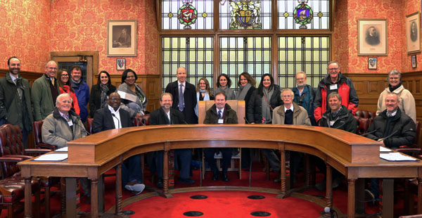 Delegates including Jim behind James, second from right.
