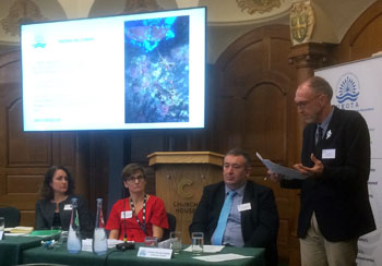 | Ian with Ascension Island councillor Kitty George. | Closing remarks by facilitator Dr Colin Clubbe of the Kew Royal Botanical Gardens. |