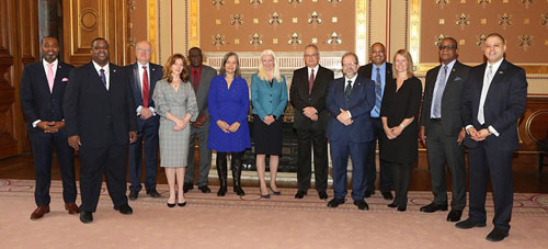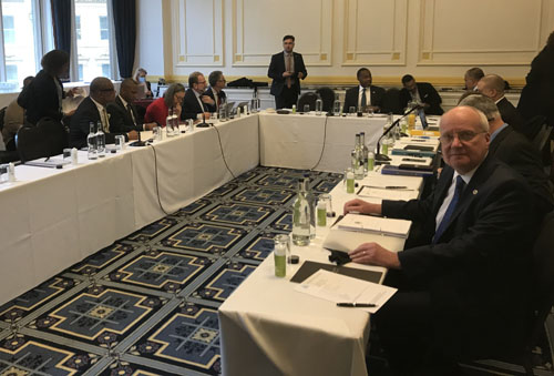 Chris seated front right at the meeting chaired by the Premier of Bermuda, David Burt