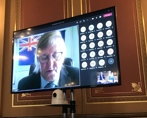 Chief Islander James Glass, addressing the JMC by video-link from Tristan da Cunha delivers an intervention