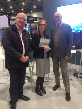 Left: Chris is pictured on the Silversea stand, with their development director Cinzia Amadio and onboard lecturer Christian Walter. |