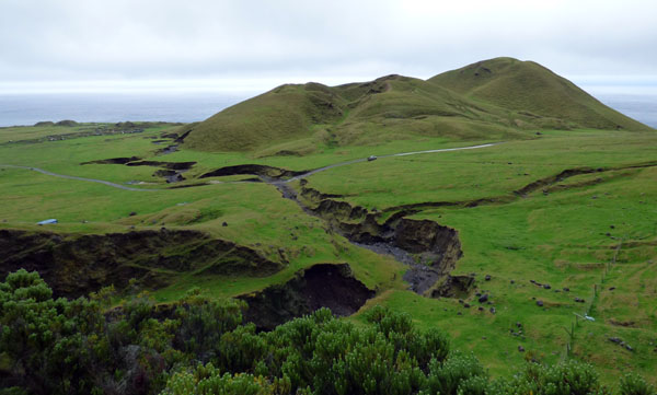Dawn and Amber found the Starchy in the area in the lower part of the photo, just 'under-the-hill' where It is significant that Island Trees or Phylica Arborea now thrive on the cliffs and just above the plain. |