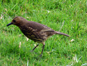 Species NotesName: Starchy, Tristan Thrush, Turdus eremita eremita Endemic to Tristan da Cunha, Nightingale and Inaccessible Islands. Previous estimates (2007) put the populations at about 50 pairs on Tristan, 400 pairs on Nightingale and 850 pairs on Inaccessible. Three sub-species can be recognised partly by size on the three islands: