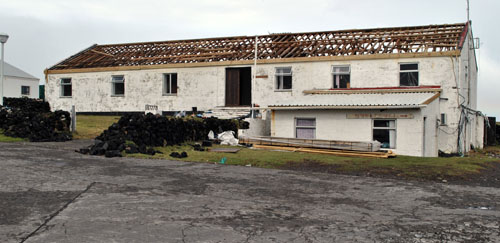 The buiding left will become a cement store and was prepared for re-roofing following severe damage in July.