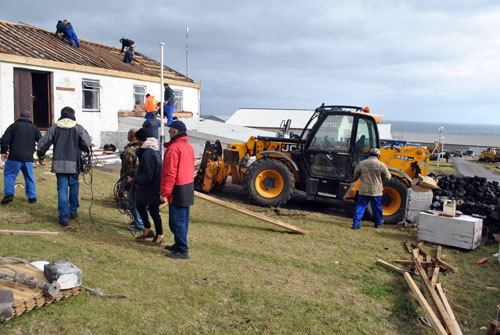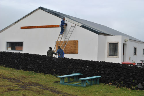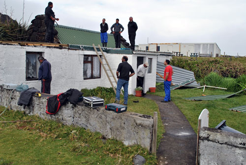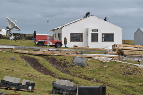 The storm started with heavy rain during the afternoon of Saturday 2nd November. Leaks were discovered in the Internet Cafe and Communications Building and phone links were lost. As a precaution to prevent damage internet links were switched off. The south-easterly storm continued to produce short squalls of severe hurricane-force winds which occurred through the evening and night. These caused structural damage to a line of buildings on slightly raised ground towards the west of the village, repeating severe damage to the Police and Administration Buildings that occurred in July 2019.