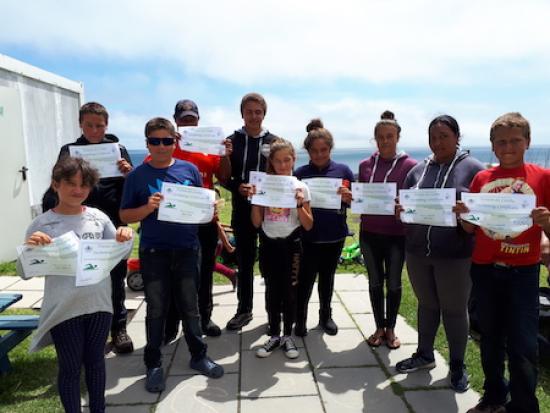 Children from Classes 3-5 with their certificates for swimming between 600m and 1200m. |