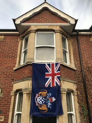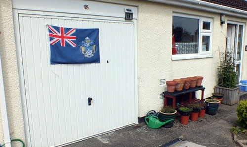 | Above: Tristan flag adorns the front of Tristan Government UK Representative's Salisbury home |