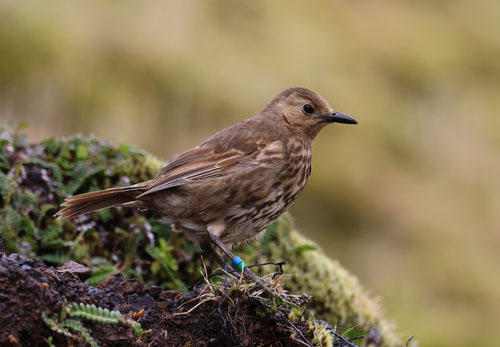 The Tristan Thrush or Starchy is the only native landbird that survives on the main island of Tristan; the native finch and flightless moorhen both went extinct in the 19th Century. The thrush on Tristan is smaller and paler than on Inaccessible and Nightingale Island, and is recognised as a distinct subspecies. It is much more scarce on Tristan than on the other islands, but there has been little attempt to estimate their abundance and distribution. Peter Ryan and Coleen Moloney returned to Tristan in February-March 2024 to estimate the population of Starchies and Gough Moorhens. Starchies occur in low densities in Phylica woodland along the coastal cliffs, and locally at some of the gulches on the base, but are most common on the lower slopes of the peak above 1100 m. Worryingly, very few juveniles were observed, suggesting that breeding success is poor.