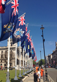 Tristan da Cunha was represented at the service in Westminster Abbey in London on Tuesday 4th June 2013 in the presence of Her Majesty the Queen, HRH the Duke of Edinburgh and members of the Royal Family, which celebrated the 60th Anniversary of the Coronation. Tristan's UK Representative, Chris Bates and his wife Julie, were invited to be among the 2,000 guests in the Abbey, together with representatives of the other UK Overseas Territories. The flag of Tristan da Cunha was flown in Parliament Square, directly opposite the Houses of Parliament and adjacent to the Abbey, along with the flags of the other Territories and the Crown Dependencies of Jersey, Guernsey and the Isle of Man. On the warmest day so far in London of 2013, crowds lined the streets to the Abbey to see the Royal Family. The prayers included from the Rt. Rev. Lorna Hood, Moderator of The General Assembly of The Church of Scotland: “We give thanks to God for The Queen's long and glorious reign: for her devotion to duty and to the peoples of this United Kingdom, the Overseas Territories and the Realms, and the Commonwealth; for her sustained support of the Armed Forces and civil powers; and for her unswerving commitment to the peaceful democratic principles of these lands”. |