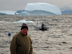 The theme of the event was "How Cool is Green". Here Chris is getting to grips with the Greenland climate. Global warming (whatever its cause) is having a dramatic effect on Greenland and delegates were taken to see how the glaciers are melting, resulting in icebergs being "calved" further and further inland; later snow and earlier sea melting affecting the traditional way of earning a living with Greenlandic sled dogs, hunting and fishing etc . Nevertheless it was still bitterly cold. At least Tristan is north of the Antarctic iceberg zone ! |
