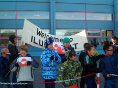 Delegates arriving in the remote town of Ilulissat in Greenland, north of the Arctic Circle, for the 11th Ministerial Conference and European Union Overseas Countries and Territories Forum in September, were delighted to be welcomed at the airport by a group of children waving Greenland flags and - wreathed in smiles - asking delegates "Where Are You From?" With representatives from places as distant as Pitcairn, the Wallis and Futuna Islands, the Falklands and of course, the world's most remote inhabited island, Tristan da Cunha, there was plenty for them to follow up in their atlases back in the classroom. Tristan's UK Representative, Chris Bates, accompanied by his wife Julie, were so moved by the warmth of the welcome and the children's grasp of English, that they asked if they could present a copy of Connie Glass's book Rockhopper Copper and leaflets about Tristan, to the school. |