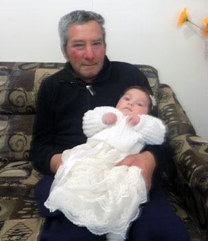 Hannah Green was baptised on Sunday 25th September in St Joseph's Church by Father Paul Taylor, visiting Catholic priest during the Agulhas visit. Photo above shows Father Paul with Hannah and Godparents Absent Godparents were Matthew Green, George Swain, Adrian Swain, David Gerber, and Francesca Constantine. |