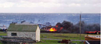 Tristan da Cunha's Fishing Factory was gutted by fire on the night of 12th / 13th February 2008 |
