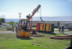 Andrew James from Ovenstones confirmed on 10th October 2008 that the 1800 tonne ship MV Baltic Trader had been secured to provide the essential transport of personnel and cargo for the fishing factory rebuild. See full statement and details of the ship on the Shipping News Page. In addition the ship will bring a new heavy duty crane and may be involved in shipping materials for the next phase of the harbour refurbishment - See the Calshot Harbour News Page. In an upbeat announcement Andrew James concludes : Despite the lengthy search for a suitable vessel, and various other challenges that Ovenstone and The Apple Group have faced, I remain confident that all the civil and engineering work planned for the 2008/09 summer season can be completed on schedule and that we can enjoy a factory opening ceremony when the Governor visits in April 2009. Watch this space for images and news of the rebuilding of the Tristan da Cunha Fishing Factory as it happens. |