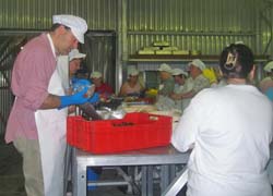 Fishing Factory Pay Dispute Settled News from Tristan Administrator Mike Hentley received 3rd October Manager Erik MacKenzie was pleased to announce on 30 September a satisfactory solution to the pay dispute which has affected production at the Tristan Lobster Factory for the past 3 weeks. Traditionally, this work has been on piece-rate terms, with workers packing the basic product of lobster tails being paid per box. To meet a growing market demand for whole lobster (cooked or raw), the company have introduced a wages structure which guarantees a minimum hourly rate of pay, with the opportunity to earn additional bonus money for extra output of these products. Casual workers, who help process the catch on fishing days during the season, have accepted an offer which will increase earnings for packing whole lobster by 5.2% and lobster tails by 12.9%. |