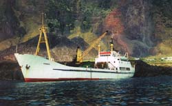 | Photograph above shows the MV Edinburgh at the Tristan anchorage - see Ships Page for details of Tristan Ships |