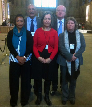 Cllr. Jacqui Ellick (Ascension), Cllr. Lawson Henry and Kedell Warboys (St Helena), Chris Carnegy and Cllr. Caroline Yon (Ascension), in Westminster Hall before meetings with Foreign Affairs and Environment committees. |