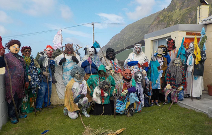 Report from Dawn RepettoThe weather was good here and there were a lot of people who dressed up. The afternoon got underway with the dressing up and scaring by the okalolies. Drinks at the Administrators started at 6pm followed by drinks at the Chief Islanders residence. At around 9pm, people went off to their private braais and fireworks were set off around 10pm. This was a lovely sight and so enjoyed by the children. After braaing was over everyone made their way to the gong for the ringing of the gong and the church bell. Quite a few parties were still ongoing after 2pm. The Okalolies has asked me to say a special thank you to the Administrator and Chris Carnegy for providing the new masks, they are extremely grateful. |