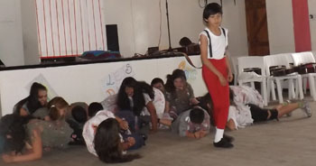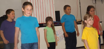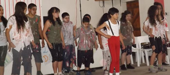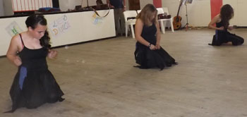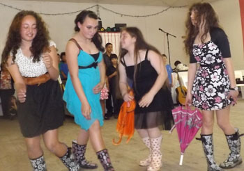 The school choir then sang 'Raindrops Keep Falling on My Head' while four members of class five danced with umbrellas. This was followed by the folk song 'Soldier Soldier' in which Dylan was the soldier, Shannon the girl who wished to marry him and Chantelle the angered soldier's wife; once again the guitar and percussion group provided the music. |