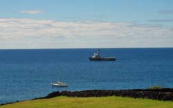 The specially chartered trip of MV Kelso arrived at Tristan da Cunha on Friday 22nd December, with an advance party from the Titan salvage team accompanied by an environmental assessment team. The 3180 tonne salvage tug De Hong, built in 2000 in China, chartered by salvors Titan sailed from Cape Town on 24th December and arrived on Friday 29th December.