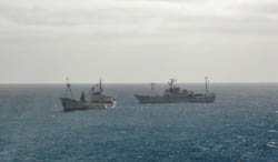 RFA Gold Rover arrives with vital drugsRFA Gold Rover arrived after its 3261 km or 2026 mile sea journey from Ascension Island on Sunday 16th December, completing an overall drug trip of over 10,006 km or 6217 miles (including an UK-Ascension air trip) to Tristan da Cunha! The Tristan community is most grateful for the prompt response of the UK Foreign and Commonwealth Office and Royal Navy in arranging this extra-ordinary pre - Christmas delivery of drugs to ensure islanders' medication did not run out before the next scheduled ship in late January. See also Hospital News. |
