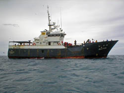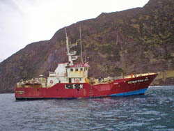 | The fishing vessel Hemeferio Sul which came to Alycon's aid (Photo: James Glass) | |