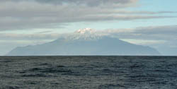 MV Edinburgh's Delayed Winter Trip MV Edinburgh arrived on Friday 30th June after a delayed and bumpy crossing lasting nine days, instead of the normal six, slowed by strong headwinds and currents. At least the ship's arrival coincided with clear conditions to enable Janice Hentley to take this picture of a snow-capped Peak, and the local weather and good sea conditions allowed passengers to disembark and the fresh fruit & veg to be unloaded.