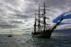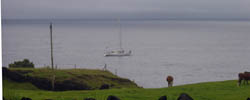 Visit of SY Discoverer SY Discoverer, with 14 mixed UK Armed Forces personnel as crew on a training cruise from Rio to Cape Town, called at Tristan for the day on Saturday 17 February. Picture taken by Janice Hentley shows the yacht moving towards the anchorage on arrival. |