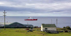 | MV Edinburgh arrived on Friday 19th January on a special charter from the oil rig salvage company Titan. It proceeded direct to Trypot Bay to transfer fuel to the tug. Passengers were transferred from MV Edinburgh to the island's rescue boat Atlantic Dawn and one of the salvage rug's RIBs, arriving at the Settlement later in the afternoon. |