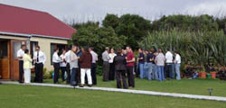 SY Marianne's emergency visit The sailing yacht Marianne anchored at Tristan early on Tuesday 20th February following a request for medical assistance the previous day. Despite an overcast sky with light rain and a blustery south-west wind a team managed to get the crew ashore so that Dr Carel could check out a suspected broken clavicle injury to one of the four sailors. Their visit was extended overnight, with one crew member enjoying traditional Tristan hospitality ashore. The crew - Martin, Joel, Charles and Louis -had last visited Argentina, and they departed this evening of Wednesday 21st February en route to Cape Town. They kindly donated a cricket ball to the Island Community, so we will soon be planning a tour of the West Indies, but not inclusion in the forthcoming World Cup! Unfortunately MCC rules prevented a 4-a side international cricket match. |