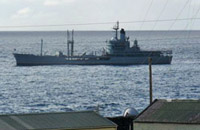 Hello and Goodbye David Morley sent this last picture from The Residency on Friday 1st October 2010 showing MV Baltic Trader (left) which had arrived from Cape Town on 30th September, and SA Agulhas (right) , preparing to load passengers (including David and his wife Jacki departing after three years) ready to depart on Saturday 2nd October for Cape Town as scheduled. On David's departure Sean and Marina Burns will move into The Residency. |
