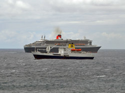 Historic Royal visits as Queen Mary 2 and RMS St Helena are both at Tristan on 1st February 2011 |