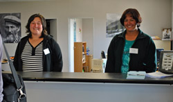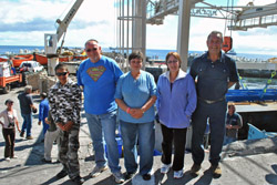 Sean Burn's photos show; Captain Steve Norris with Dawn Repetto and Iris Green; Post Office staff Donna Green & Natasha Glass who served crew members that day. |
