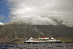 Fairmount Fuji another Christmas Visitor Sean Burns' photograph shows the vessel off Nightingale Island on 27th December with Middle and Stoltenhoff Islands behind. See MS Oliva Impact Page for full story |
