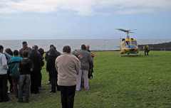 Views of the plaque unveiled to commemorate the 50th anniversary of the October 1961 volcanic eruption with crew members and Islanders present |