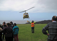 | Busy loading day postpones volcano ceremony A ceremony was to held on Monday 10th October to commemorate the evacuation of Islanders from Tristan on this day in 1961, following the volcanic eruption on 9th October, but, as often happens on Tristan, a combination of awful weather and concentration by the workforce on loading both MV Baltic Trader and MV Edinburgh for their return journeys to Cape Town, has postponed the event until later this week. See our separate 50th Anniversary of 1961-3 Events and Book Project Page |