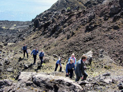 Views of HMS Clyde's crew and others walking up to and gathered on the 1961 lava flow |