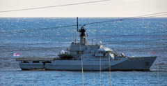 Tristan prepares for visit of HMS Clyde on 28th October In a Public Notice issued on 26th October Administrator Sean Burns heralds the visit : All of the crew are hoping to come ashore. The Tourism Department has arranged a number of events. The pub, café and the museum will all be open and there will be ‘heritage tours’, golf and various walks on offer. The Island football team are ready to take on the ship’s company in a match kicking off at 14.00. Please come along and lend your support! At 11.00 I have asked the ship’s Captain and crew to join us at the top of the volcano where we will have a small ceremony to unveil the plaque that was recently placed to commemorate the 50 years since the eruption of the volcano and the evacuation of the Island. All are welcome to join us. HMS Clyde is the Royal Navy’s latest Offshore Patrol Vessel, equipped with a helicopter, and is the Falkland Islands Protection Vessel (FIPV). Launched in 2006, she was the first ship to be built and launched in Portsmouth since 1967. HMS Clyde is now permanently deployed to the South Atlantic. This ship is the fourth vessel to bear the name HMS Clyde. I know the community look forward to welcoming the crew ashore. We aim to publish pictures and a report of HMS Clyde's Visit when received. |