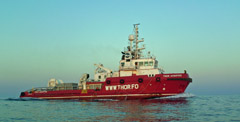 Thor Assister called at Tristan on 7th February 2013 and then evacuated 21 year old crew member and former soldier Kyle Baker on the ship's outward trip from Walvis Bay to the Falkland Islands: see reports below. |