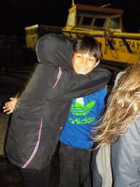 Amongst the returning islanders aboard Baltic Trader was 12 year old Nathan Swain |